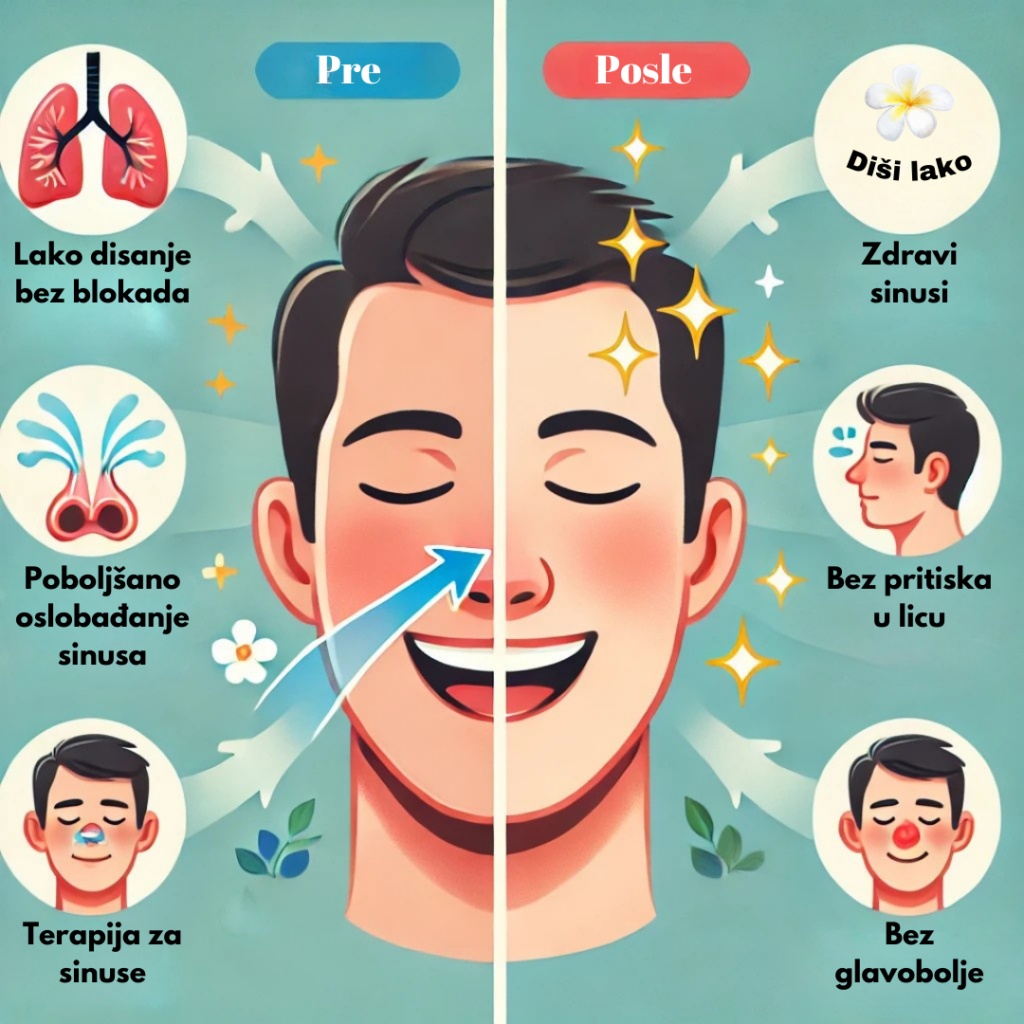 ✔ Smanjenju sinusnih tegoba i hronične zapušenosti